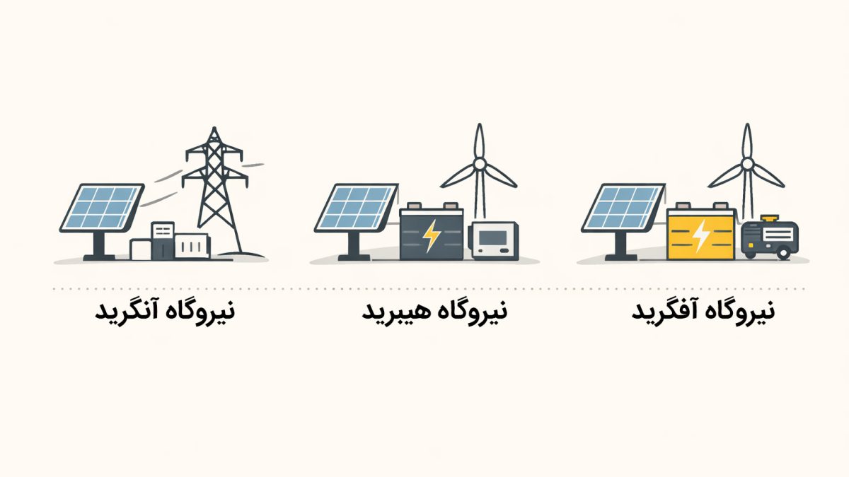 نیروگاه های خورشیدی دارای سه نوع اصلی و متفاوت هستند. نیروگاه های آنگرید(On-Gride) یا متصل به شبکه، آفگرید(Off-Gride) یا جدا از شبکه و نیروگاه های هیبریدی. ممکن است در هنگاماحداث نیروگاه با هر سه نوع نیروگاه مواجه شوید و انتخاب نوع نیروگاه برای شما کار سختی باشد که ما در این نوشته سعی می کنیم انواع نیروگاه ها را به زبانی ساده معرفی کنیم.